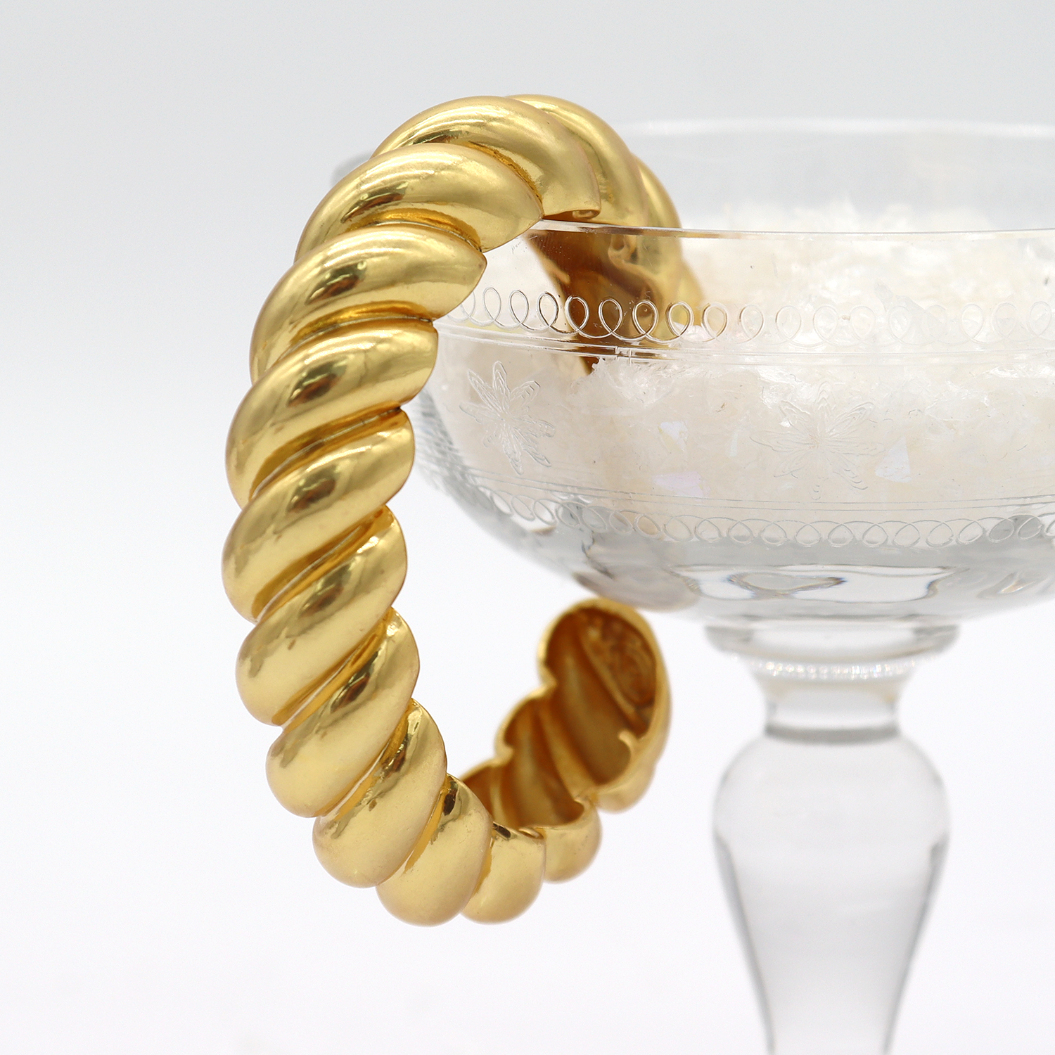 This Twisted Rope Bracelet features a beautifully textured rope design that wraps elegantly around the wrist. Perfect alone or stacked for a layered look.